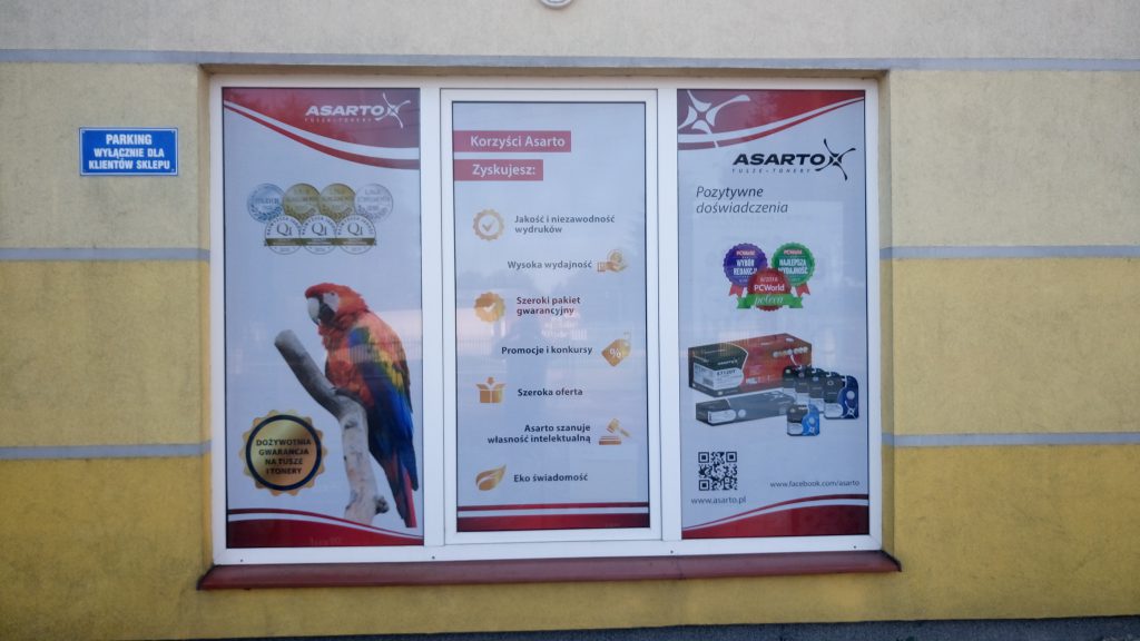 Wysokiej jakości folia monomeryczna rekomendowana jest do tworzenia wszelkich reklam samoprzylepnych, do ekspozycji wewnętrznych i zewnętrznych. Dostępna w wersji matowej lub o połyskującym wykończeniu. Dodatkowo istnieje możliwość zalaminowania wydruku, tym samym zwiększając trwałość reklamy.
